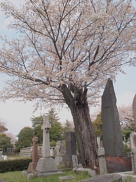 異国の人は土葬だし、まるで死体からダイレクトに生えてるような桜。