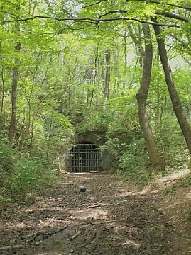 この道は貯水池を作るのに資材を運んだ軽便鉄道の軌道の跡。