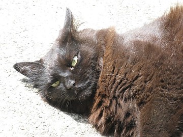 コンクリートの上で転がると、砂粒が毛に入って後が大変ダ・・・