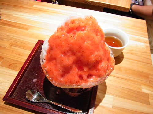 話題の天然氷のかき氷屋さん「ひみつ堂」のいちごミルク。