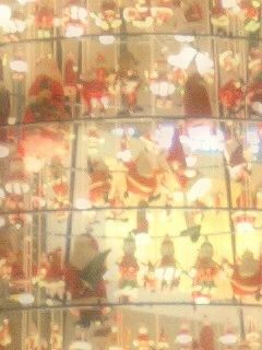 雨の中、でかけた。 寒かった。 頭が痛い。 風邪、ひいたかも・・・ サンタの小さな人形でできたツリー 今夜は早く寝よう。