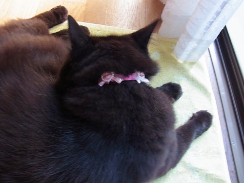福太郎、ひっかかると外れる首輪をしていたのだけど、自分で外すことを覚えてすぐに失くすので、